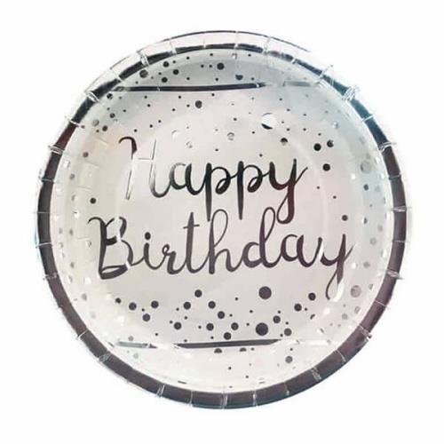 Gümüş Happy Birthday Baskılı Tabak 6 Adet