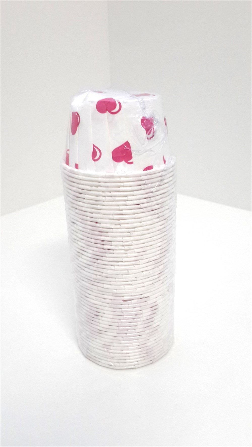 Muffin Kek Kapsülü Beyaz Kalp Desenli 50 li